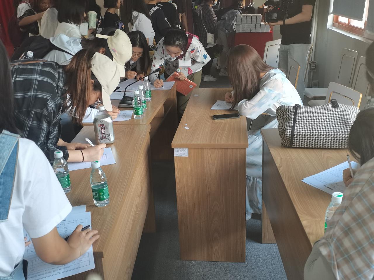 活动的最后,参与活动的师生和企业代表一起合影留念。合影过后,报社为与会人员准备了一份纪念礼品:一个小风扇和一本关于海南自贸港建设的图书,同学们对此表示感谢,并积极参与填写报社的调查表,部分有意向者还填写了招聘表。在一片其乐融融的氛围中,本次活动圆满结束。