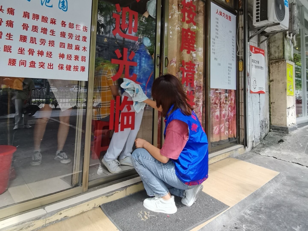经过前几期的盲人志愿服务活动,志愿者们都已经十分熟悉活动的流程与内容。在到达盲人按摩中心后,志愿者们各司其职,帮助盲人打扫卫生,活动进行得井然有序。在活动过程中,有的志愿者负责扫地,有的负责擦拭窗户,有的则负责拖地。当其中一些志愿者完成其负责的工作后,也会主动去帮助未完成任务的同伴。活动结束后,盲人也向志愿者表达了他们的感激之情。