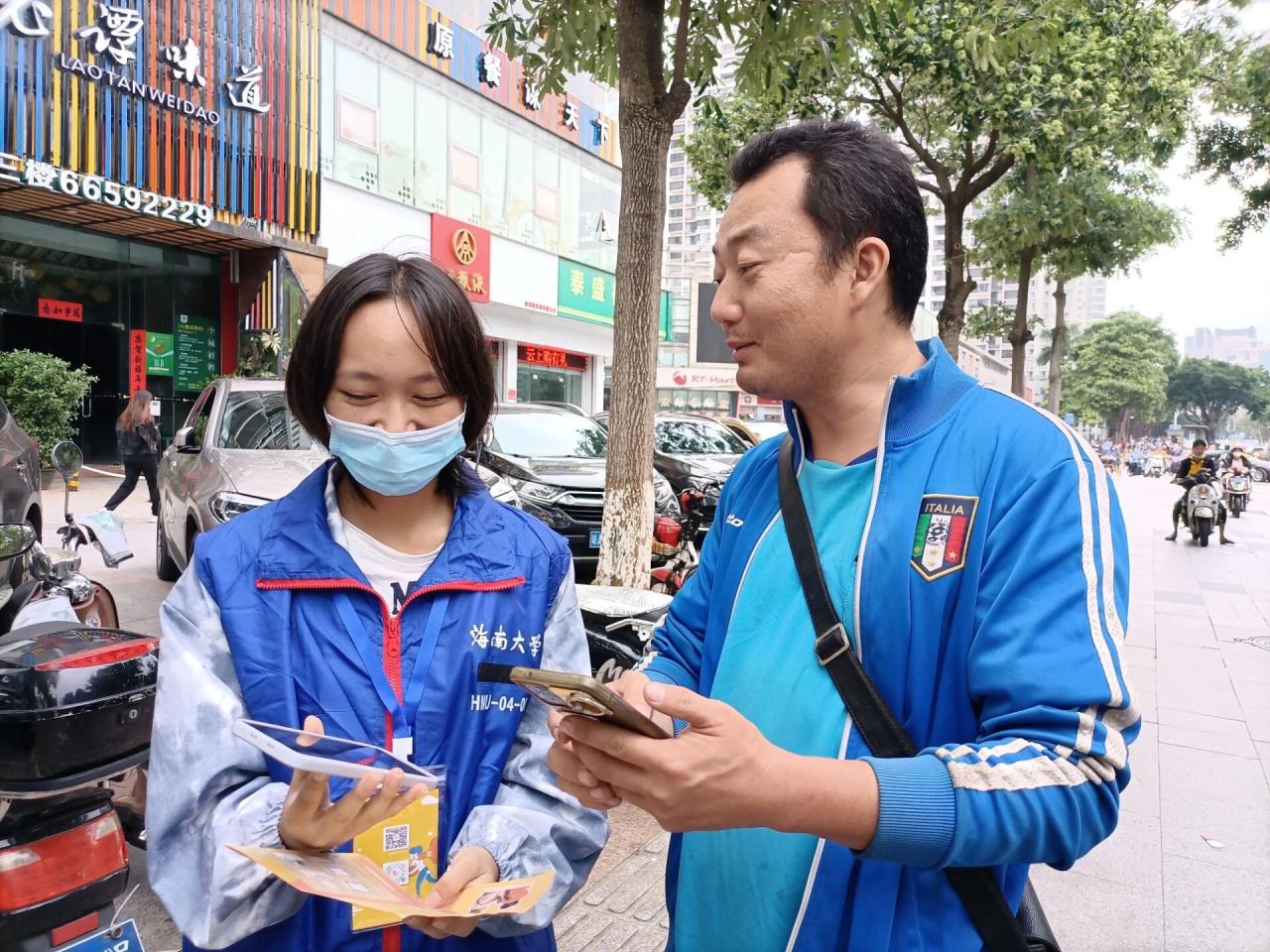 在带队人员详细讲解募捐流程后,志愿者们分头行动,走上街头进行劝募。志愿者们向行人耐心解释善行100活动的捐助模式,并且阐明了该公益活动的意义所在。有些行人会质疑活动的真实性,志愿者们便打开手机,给行人查看相关官方消息以证真实,在对此次活动有了充分了解之后,大多数行人选择捐赠,非常愿意为贫寒地区的孩子献上一份爱心。志愿者们手持募捐手册以及募捐二维码,积极向行人介绍募捐活动,全程尽心尽责,活动开展十分顺利。