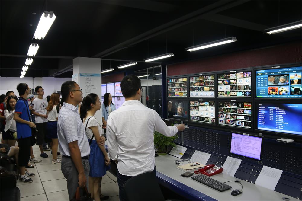 师生表示了热烈的欢迎,然后对海南广播电视总台及各个频道的发展进行详细讲解,让同学们对海南广播电视行业的发展有了初步的了解。随后在工作人员的引导下同学们参观了导播室、录音室、演播大厅以及电视台众多幕后工作者工作的地方,看到了幕后工作者的辛苦,看到了新闻背后的每个人的辛勤付出,看到了电视台的基础布局与设施。同学们在休息室看到《夜线》栏目工作人员疲惫的状态后不禁为众多幕后工作者的努力所触动。参观的时候恰逢新闻频道《整点新闻》节目直播,同学们在导播室全程观看了节目直播,对电视节目有了进一步的了解和认识。 随后在电视台工作人员的引导下,同学们去海南网络广播电视台进行参观。在海南网络广播电视台同学们参观了演播厅以及控制中心等场所,对网络广播电视有了进一步的认识,并了解了海南IPTV节目生产的流程。最终,在同学们的不舍中本次“走进企业”活动圆满落下了帷幕。 接轨社会,放眼未来。“走进企业”活动是学院为同学们今后能够更好地进行职业生涯规划、选择自己的职业而展开的一项具有十分重要意义的活动。本次活动的圆满举办,使得女同做爱