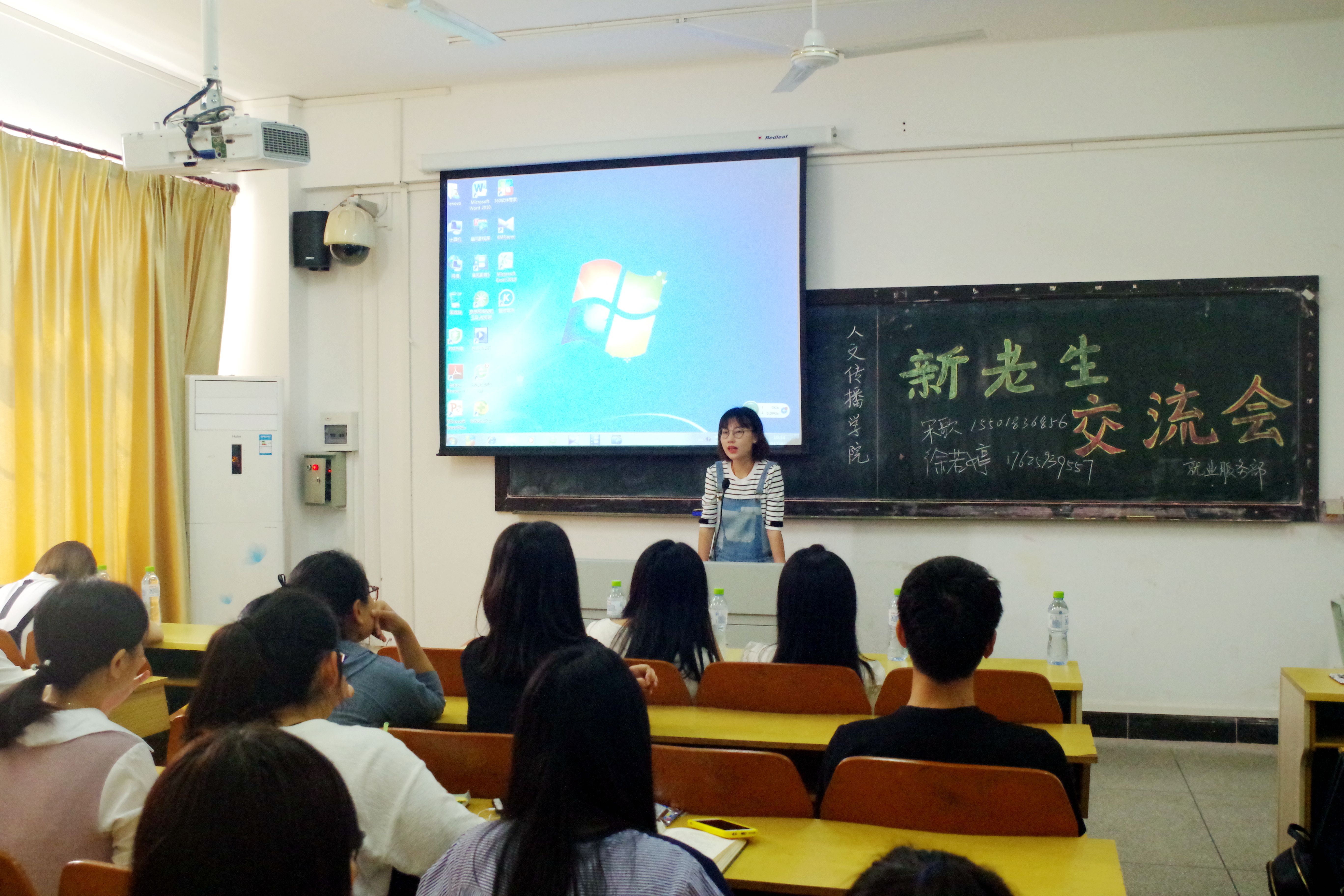 城西校区3A01教室举办了2016级新生职业指导活动月的新老学生交流会。本次活动邀请了2013级的宋歌、徐若婷、胡晓宇、郭雅雯和吴璇五位同学与大一新生进行交流,分享经验,交流会由学生会就业服务部部长许鑫主持。