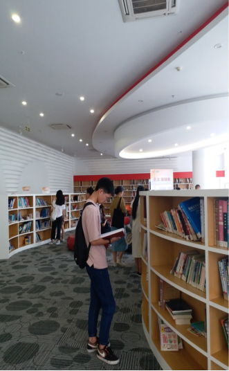 在海南生态软件园产业服务部专员柏雪的指引下,同学们在惊喜和好奇中走进了整洁大气的展览园区。柏专员首先带领同学们进入了位于二楼的全视角影厅,在这里观看生动立体的软件园介绍视频,细致入微的环境展示、企业生态特色的突出、变幻多姿的观察视角,让同学们对于生态软件园先进的“微城市”运营方式有了初步的了解。 紧接着,柏专员带同学们参观了员工们接受文化熏陶的地方--图书馆,整洁静谧的环境和琳琅满目、门类齐全的书本吸引了同学们的目光,并都自发地捧起书本投入书的海洋中,也对于生态软件园一体化微城市理念有了更深入的理解,舒适惬意的书室无形中激发了同学们为职业目标奋斗的热情。 随后,同学们跟随柏专员前往一楼大厅中央的展示沙盘区域对企业进行更为深入的探究。在柏专员的介绍中,同学们了解到生态软件园区的基本布局的与众不同之处:员工办公区、住宅区、休闲娱乐区之间15分钟即可到达,人性化的设计理念令人称赞惊叹。介绍中还提到了企业间的高层合作项目、先进人才引进计划以及为海南建设自贸港做贡献等内容,有助于同学们在感受到企业对于杰出人才的需求和保障后自我勉励,在以后的学习生活中积极进取、奋发上进,根据企业的招聘要求调整自身目标。 3.参观园区 感受高品质办公区