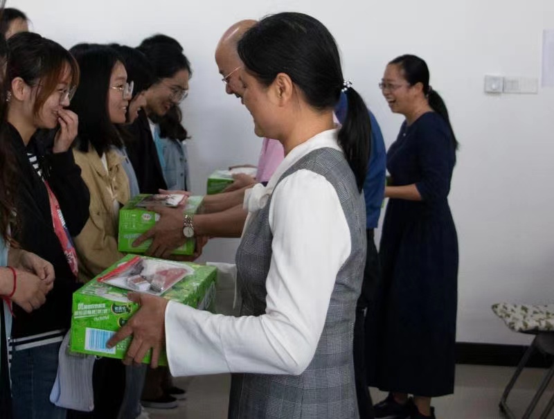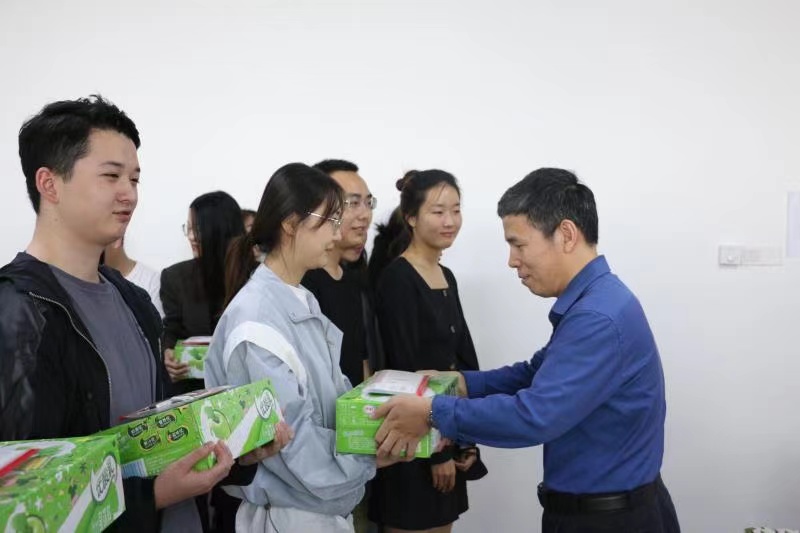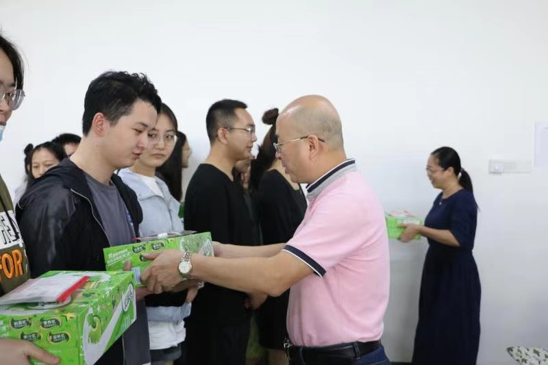 随后,院领导代表学院给考研同学分发学院准备的“考研加油包”,为他们送上鼓励和祝福。学院为每位考研的同学准备了牛奶和文具,希望在他们的生活和学习上出一份力,助力考研学子马到成功。