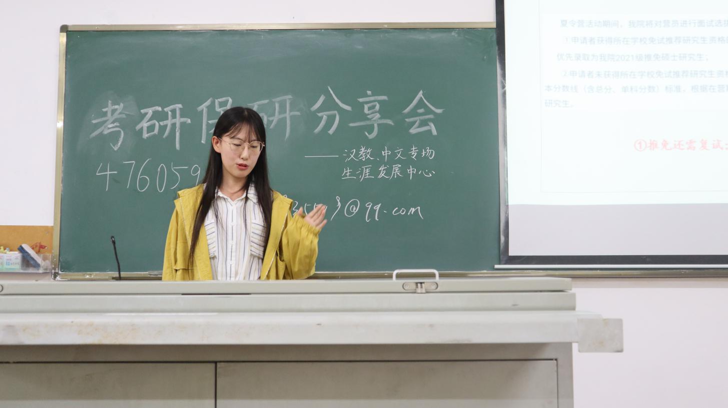 为让广大文院学子了解考研保研相关知识,2020年11月8日上午9:00,人文传播学院生涯发展中心在海甸校区2号教学楼106室及 111室组织开展了中文专场和传播戏影专场的考研保研经验分享会。本次分享会很荣幸地邀请到六位优秀的学姐来进行经验分享,2018级、2019级、2020级同学积极踊跃报名参加,学习学姐成功的经验。