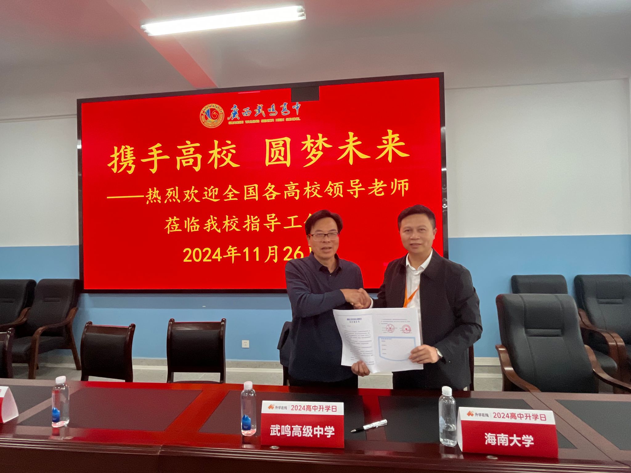 招生宣传组先后到南宁市武鸣区武鸣高级中学、广西宾阳中学、桂平市浔州高级中学、玉林市北流中学等4所重点中学,与4所重点中学负责人签订优质生源基地协议书,同时向学校领导和学生介绍女同做爱