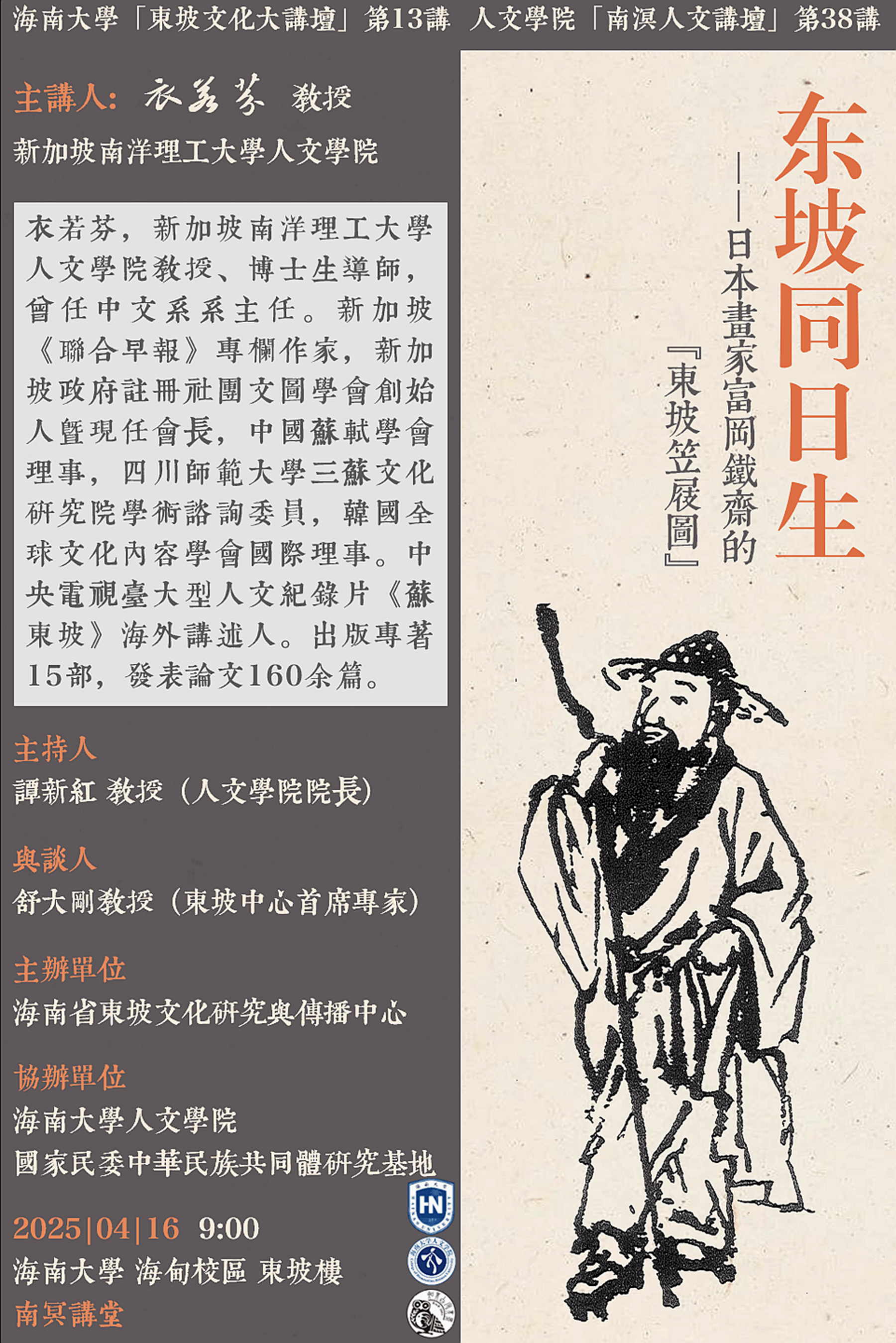【学术预告】女同做爱 “南溟人文讲坛”第三十八讲 衣若芬 东坡同日生——日本画家富冈铁斋的《东坡笠屐图》