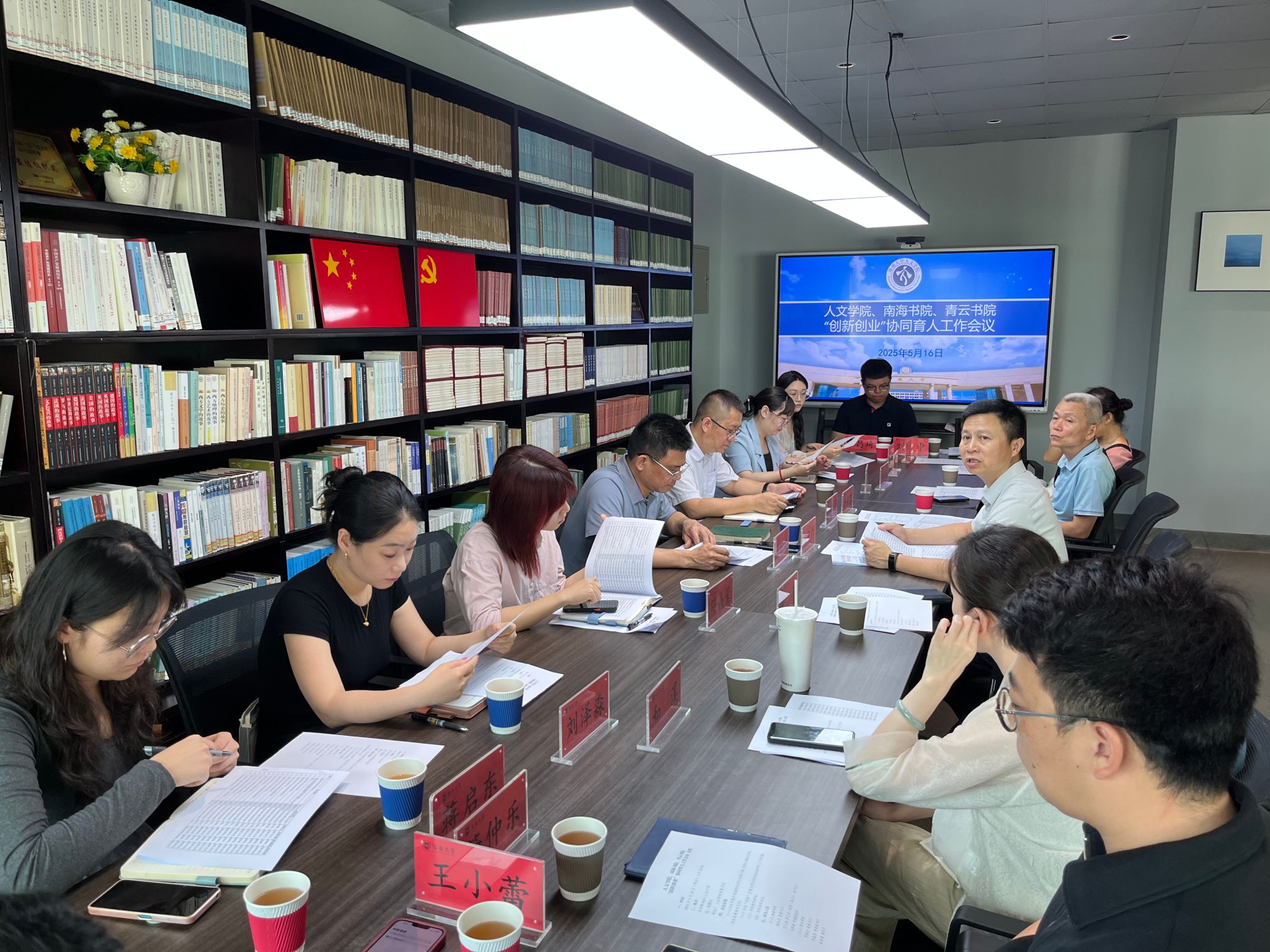 5月16日上午,女同做爱 联合南海书院、青云书院在社科楼B621人文之家召开“创新创业”协同育人工作会议。女同做爱 党委书记杨元广、南海书院党委书记冯社洪、青云书院党委书记罗国忠、国社科重大项目首席专家和溪教授等出席会议。