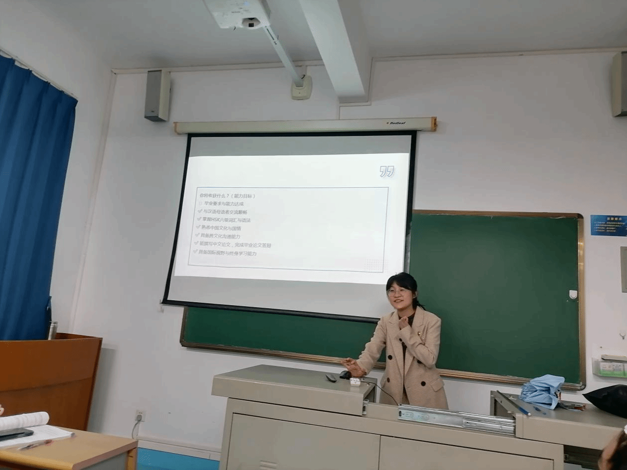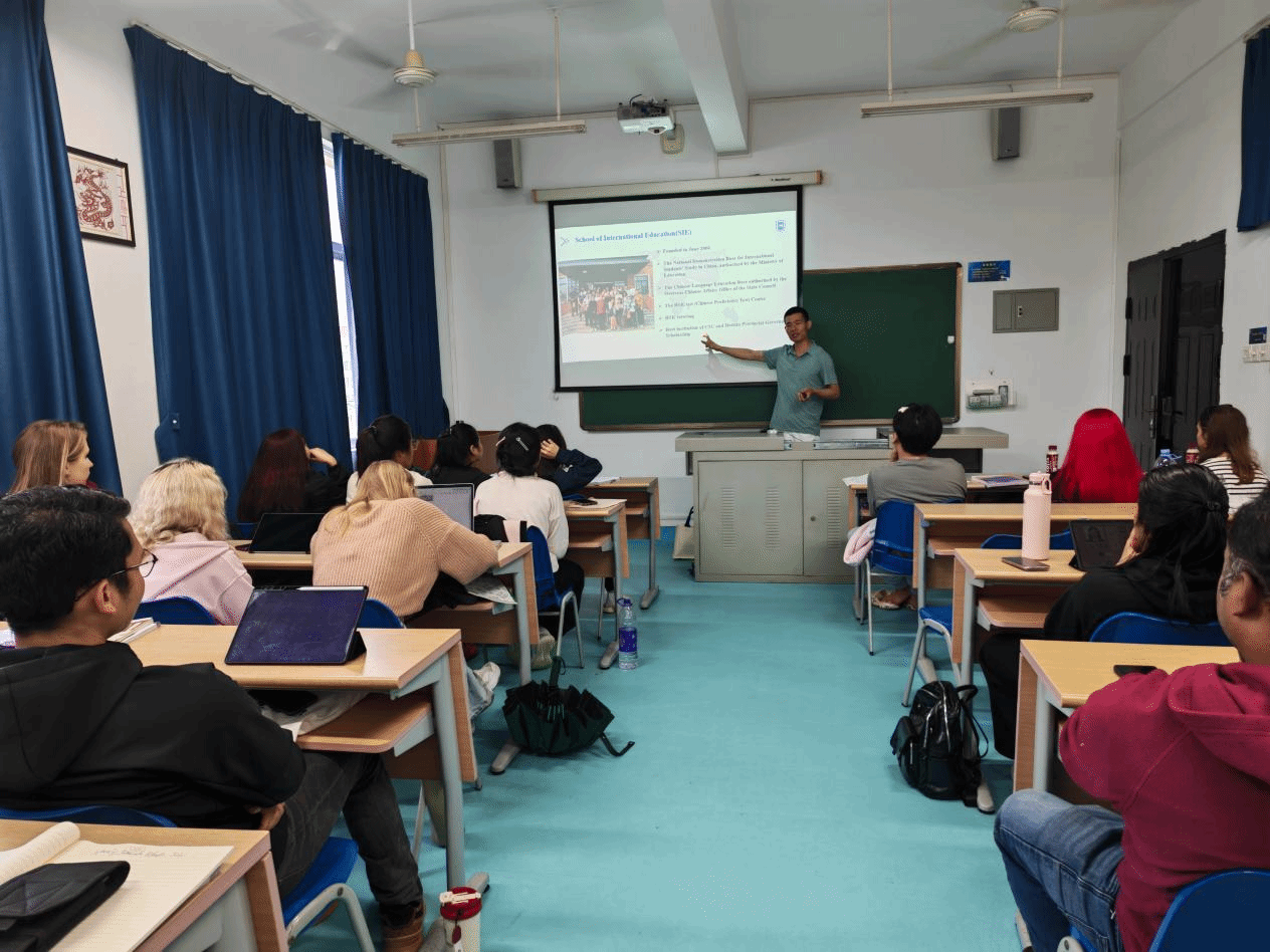 汉语言专业主任黄一丹和国际教育学院国际学生办公室主任崔永富先后在语言班开展汉语言(国际学生)本科专业宣讲,为在场国际学生搭建了解专业的桥梁。