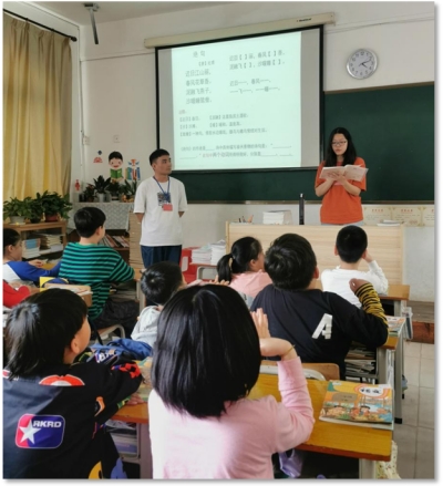 (实习同学李云逸和孙建勋在班级和小学生共同值日)