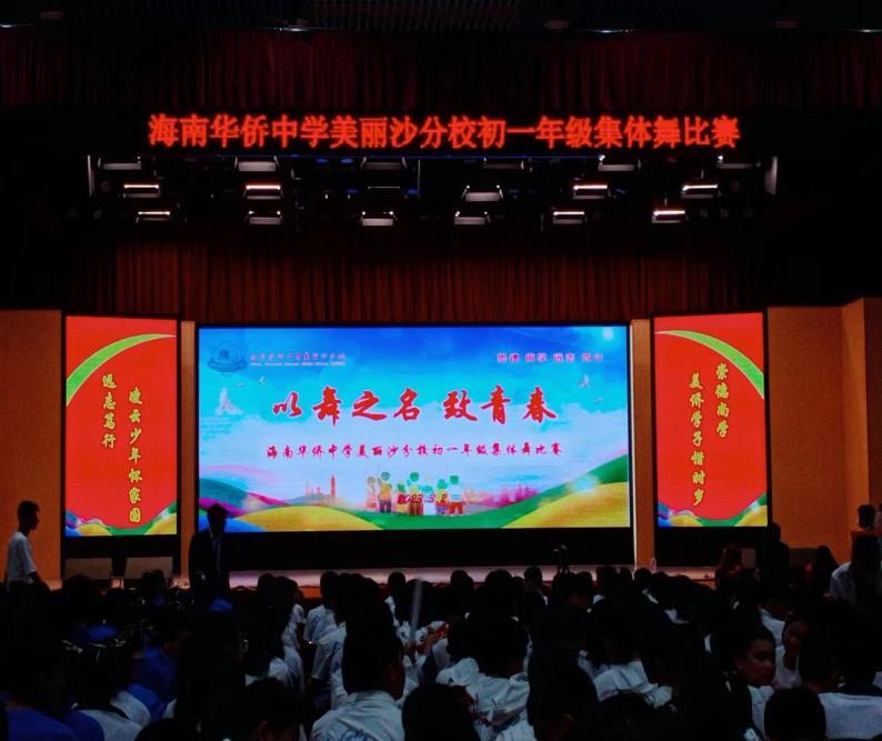 目前,同学们正砸在侨中美丽沙分校有序开展开实习,在不同的岗位完成各项任务,收获了不不同的体验。比如跟随初一年级的学生于 2023 年 3 月 2 日晚上集体观看了集体舞比赛并协助老师进行现场人员疏导,维持赛场纪律以及拍摄录像。同学们看着台上青春活泼的学生们,也体验到了初为人师的自豪。