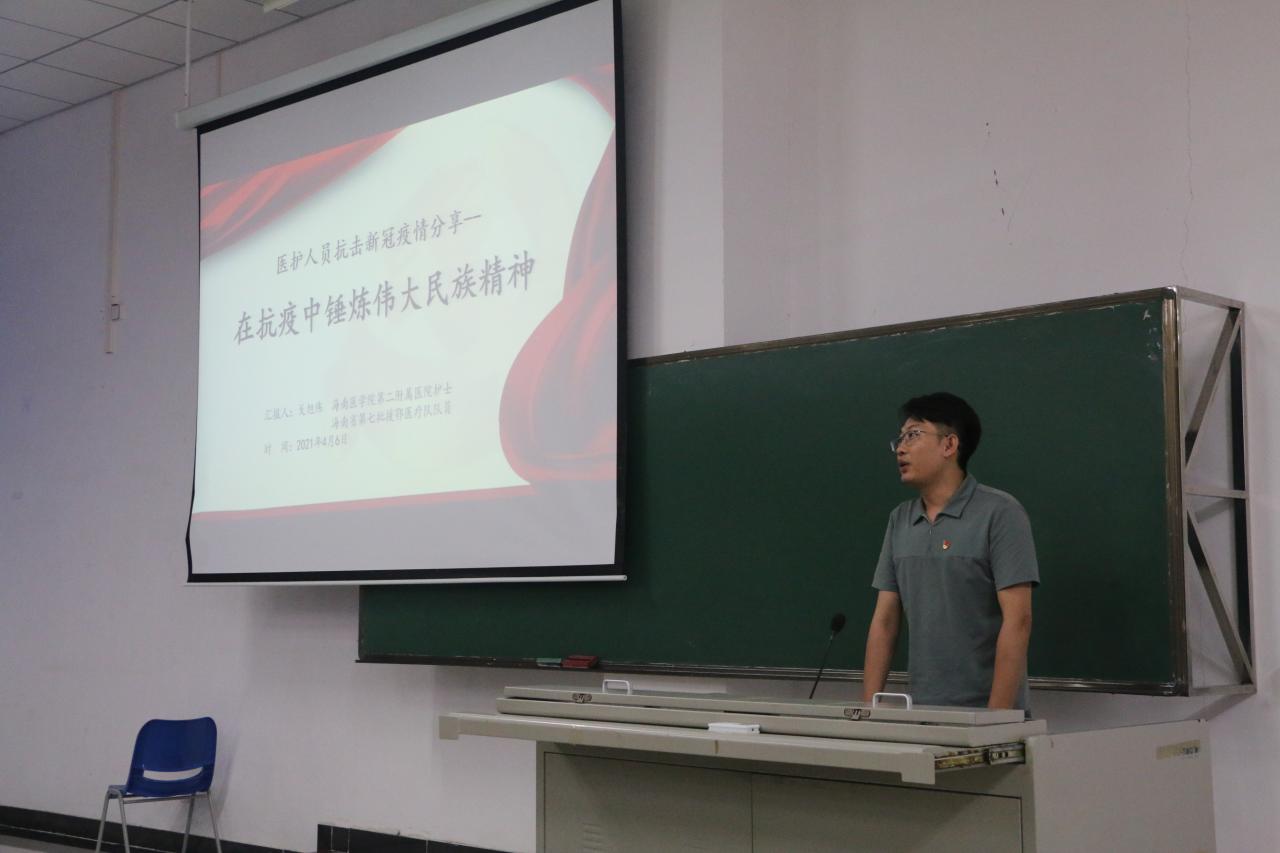 海甸校区5教114开展。学院党委诚邀援鄂医疗队成员、海南医学院第二附属医院戈旭伟同志授课。学院全体学生党员、预备党员、党员发展对象、入党积极分子参加本次党课。