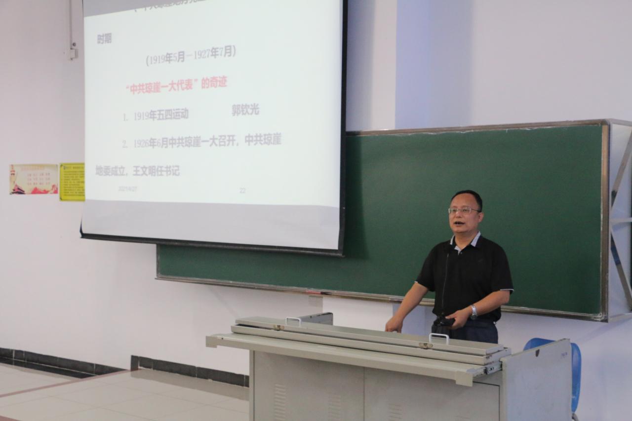 马克思主义学院教授、海南中共党史学会常务理事、海南省习近平新时代中国特色社会主义思想学习研究中心特约研究员王善老师作为主讲嘉宾。此次党课活动由学院党委副书记罗邻球同志主持,学院全体学生党员、发展对象、入党积极参加。