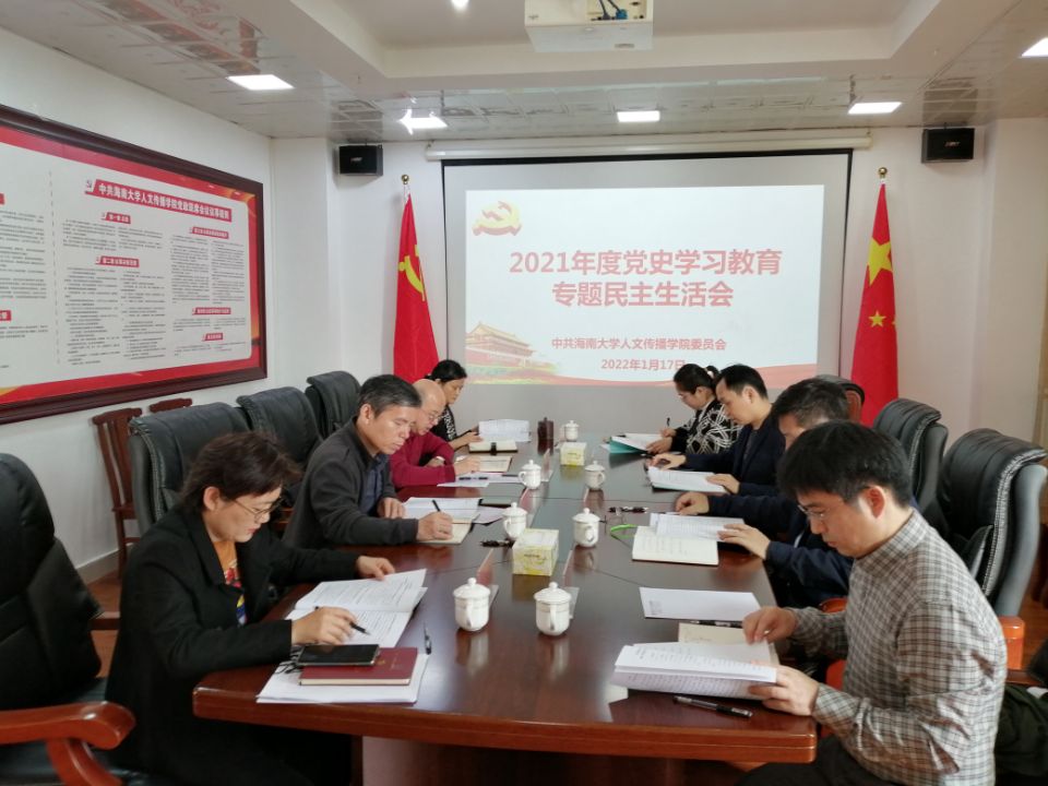 2022年1月17日下午,在社科楼B615会议室召开人文传播学院党史学习教育专题民主生活会。会议由党委书记邱华祥同志主持,党员院领导刘复生、罗邻球、李彩霞参会,非党员院领导张硕果列席会议。学校党委常委、副校长曹宪忠及宣传部李布明同志到会指导。
