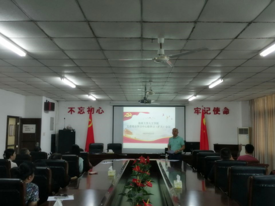 在社科楼B615会议室召开党委理论学习中心组学习(扩大)会议。学院党委委员、院领导、教工党支部书记、各系主任和副主任、所有行政管理教辅人员等参加会议,党委书记邱华祥主持。
