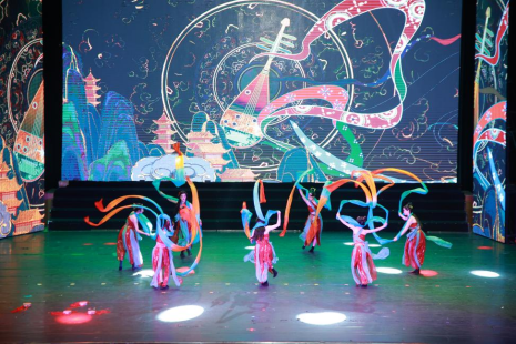 晚会以“笺香墨韵,一纸春风”为主题,分为“对檐疑燕起”“凤舞伴鸾歌”“经典咏流传”三个篇章进行。节目以诗歌为主线,通过器乐演奏、舞蹈、歌曲、朗诵等形式呈现,展现了青年学子对中华经典的传承和创新。晚会伊始,一曲传统器乐演奏《兰亭序》,将现场观众的思绪渐渐带入诗歌的境界之中。