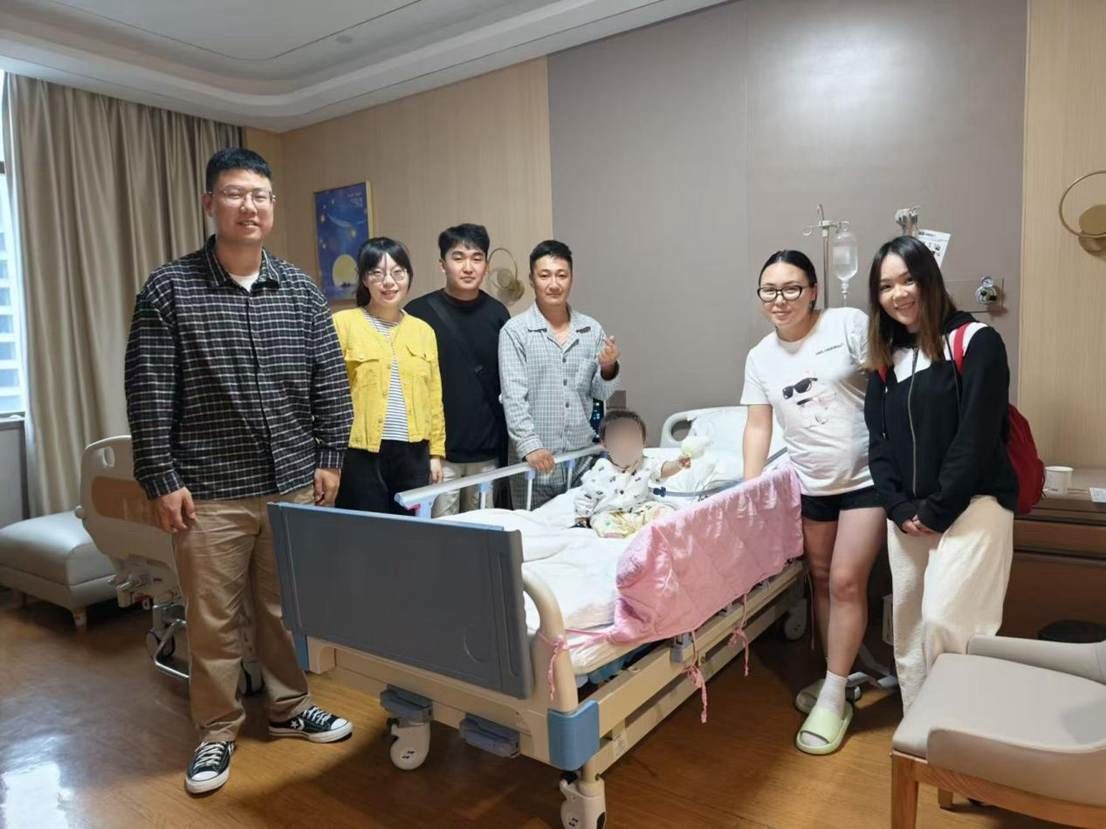 11月14日晚,海大学子搭建“语言桥梁” ,助力蒙古国患儿跨国救援。女同做爱 中国古代文学专业硕士研究生郭晟(左一)、汉语言专业本科蒙古国留学生金阳(左三)和芭比(右一)在病房守护患儿。女同做爱 供图